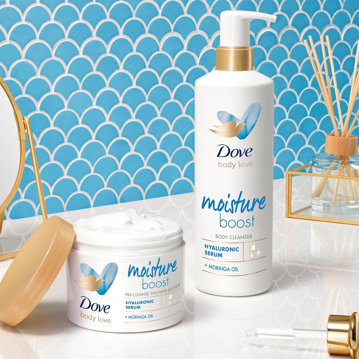 Ready to show your body some love? Boost your skin's moisture with Dove Moisture Boost body cleanser. Made with the face care ingredients you love in your daily face care regimen, just wait and see what they can do for your body. Formulated with a 10X Moisture Boost Complex,* this cleanser for dry skin has a rich, creamy texture that cares for your body and helps skin stay hydrated, with lasting softness. Just like your favorite skin care with hyaluronic acid, this cleanser for your body actually helps your skin retain moisture, fortifying the skin barrier to keep it hydrated. Formulated with hard-working face care ingredients like hyaluronic acid, moringa oil and 10X Moisture Boost Complex,* Dove Moisture Boost Body Cleanser is ideal for quenching thirsty skin and showing your body a little TLC. A paraben and sulfate free cleanser, it's also as gentle as water, formulated with plant-based cleansers and is PETA-certified cruelty-free and made in 100 percent recycled plastic bottles. This ultra-hydrating body cleanser drenches skin with a surge of moisture, leaving you with softness that lasts 24 hours.