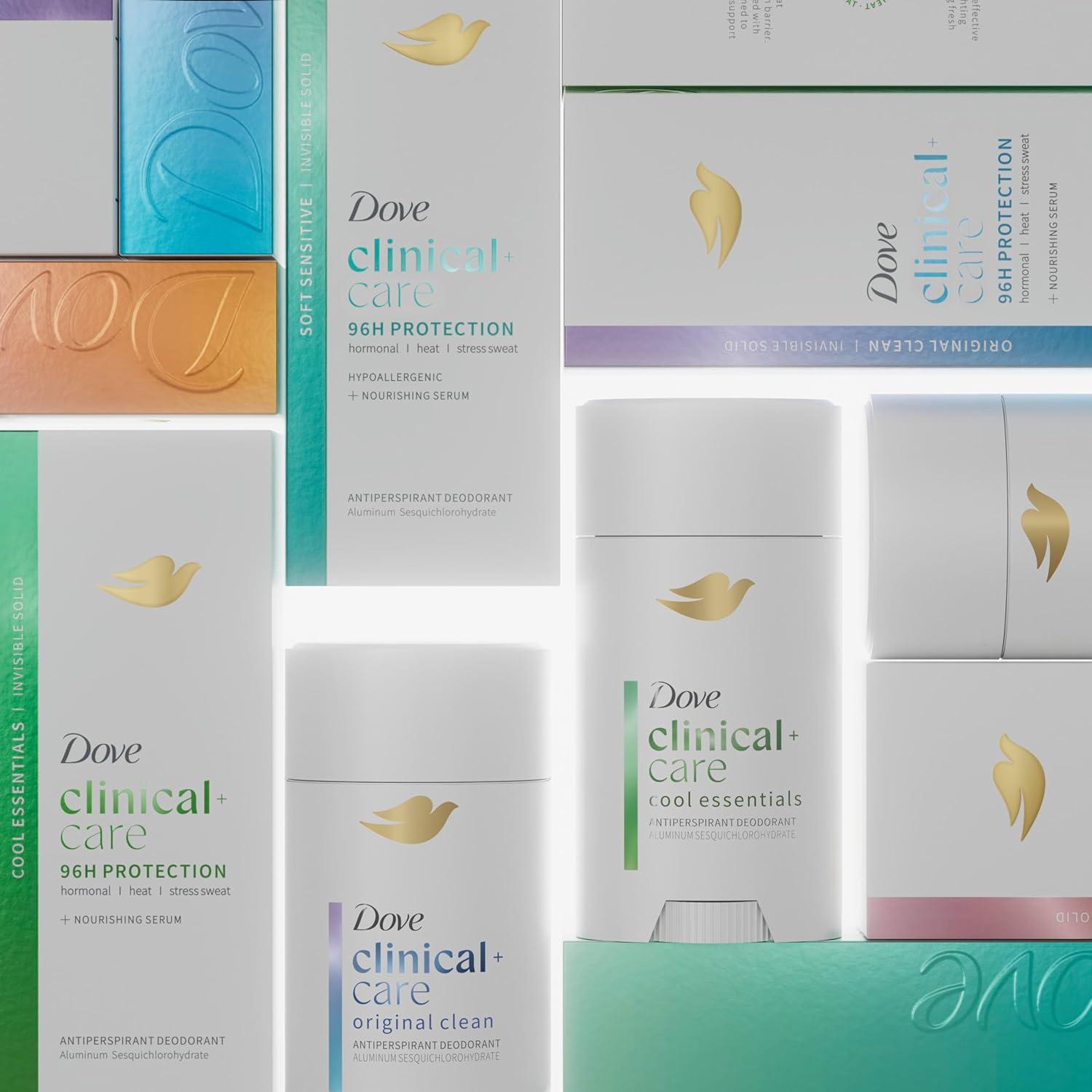 Meet Dove Clinical + Care Antiperspirant Deodorant, our best protection for hormonal, heat, and stress sweat. Designed for all of life's sweat triggers, this clinical strength antiperspirant deodorant invisible solid stick delivers 3x the protection of an ordinary antiperspirant, while being kind on skin. With its odor-fighting technology, you can feel fresh and confident throughout your day, no matter what challenges come your way. Ideal for long workdays, intense workouts, or travel, Dove Clinical + Care ensures you stay fresh and dry when it matters most. Enriched with 7% nourishing serum, Dove Clinical + Care has an advanced formula that not only helps repair the skin's natural barrier but also leaves your underarms feeling soft, smooth, and irritation-free – even after shaving. Dove is the dermatologist recommended antiperspirant deodorant brand and combines powerful protection with gentle care, making it an ideal deodorant for sensitive skin. This clinical antiperspirant deodorant features a long-lasting, crisp and clean fragrance, elevating your daily routine. Dove Clinical + Care is easy to apply: simply glide onto underarms and enjoy instant dryness with lasting comfort. As part of Dove's commitment to care, this Dove Clinical + Care is PETA Approved Vegan. Globally, Dove does not test on animals.