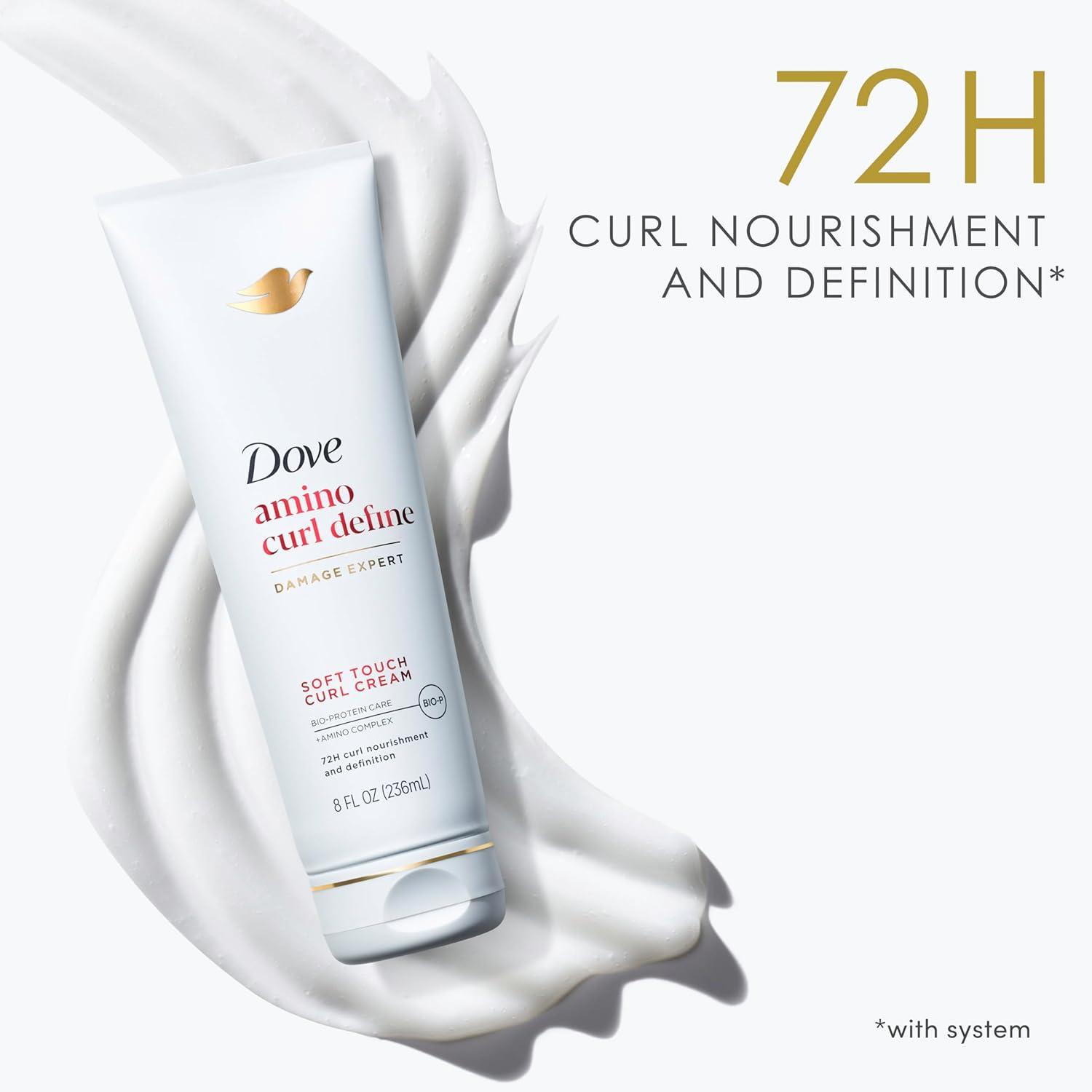 CURLS REBORN WITH ULTIMATE DEFINITION AND STRENGTH: Dove Amino Curl Define Cream, with Amino Complex, provides 72H curl nourishment and soft definition.* *with system