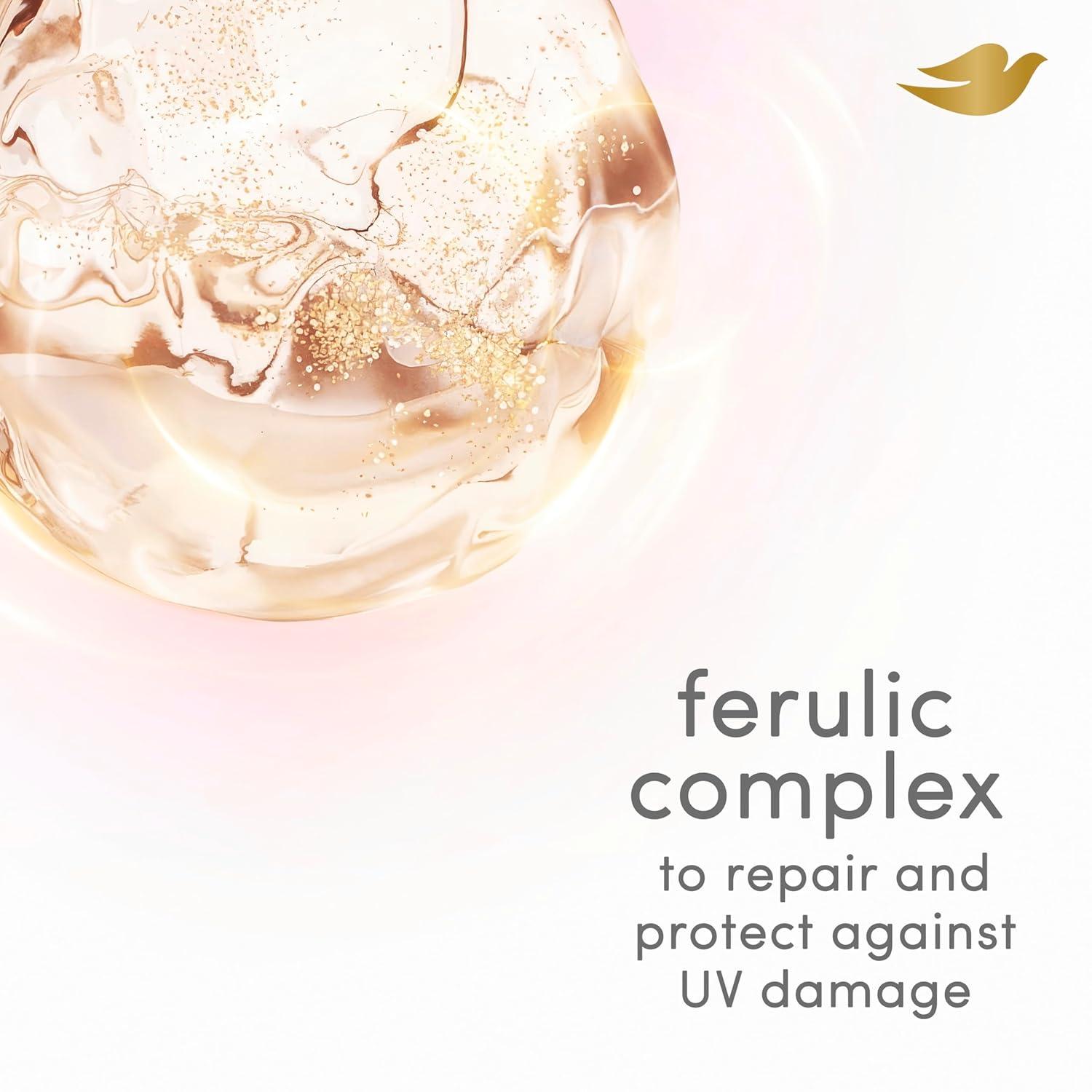 CONDITIONER FOR UV DAMAGED HAIR: This Dove conditioner with Ferulic Serum seals cuticles of UV-damaged hair and unlocks superior hair care and high gloss shine