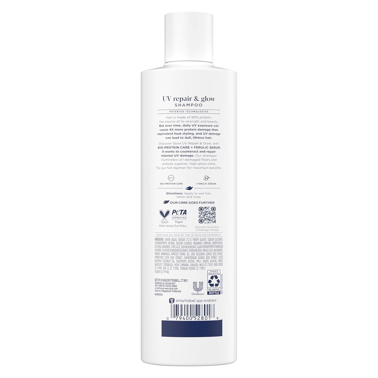 HOW TO USE: Apply shampoo to wet hair, lather and rinse before using conditioner. For extra UV repair, use the Dove UV Repair & Glow Radical Recovery Hair Mask once a week