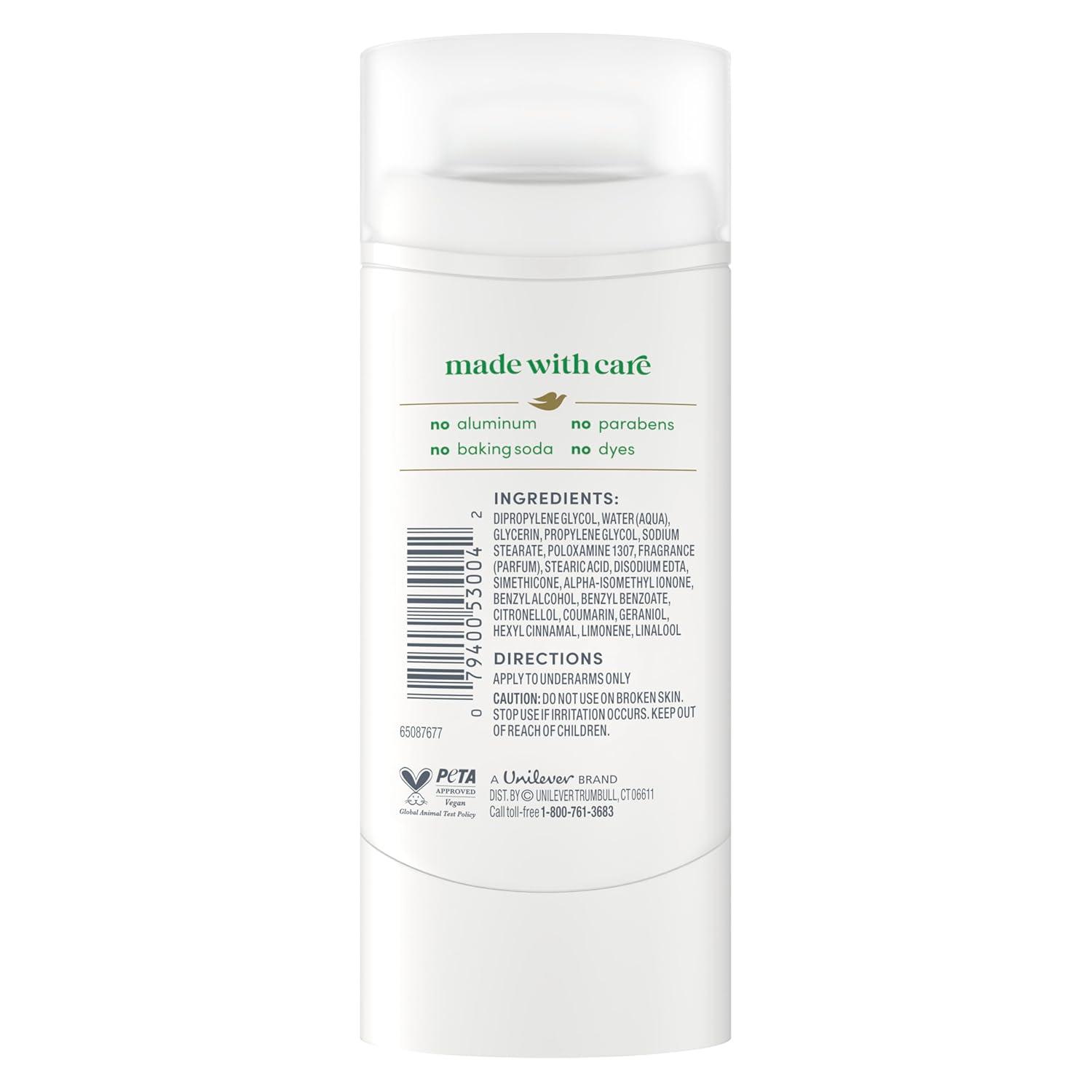 Meet Dove’s freshest deodorant yet, without aluminum. Designed for long-lasting freshness and gentle underarm care, this deodorant delivers 72 hours of odor protection with a smooth-glide formula that leaves no visible residue. It’s the perfect way to start your day feeling confident, comfortable, and fresh. With nourishing ingredients and prebiotic glycerin, it helps maintain soft, smooth underarms while being kind to your skin. Free from aluminum, parabens, baking soda, and dyes, this formula is gentle enough for daily use and approved by PETA as vegan. The scent is a refreshing boost in every swipe – crisp cucumber and green tea blended with juicy pear notes. It’s an uplifting fragrance that brings cool energy to your routine and keeps you feeling fresh all day. Dove Aluminum Free Deodorant Stick Cucumber and Green Tea is your go-to for odor protection, freshness and skin-loving care.