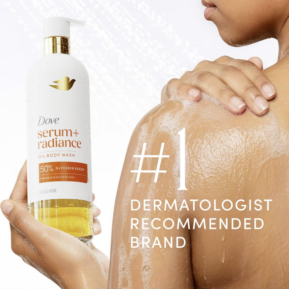 Elevate your shower into a luxurious self-care ritual with Dove Radiance Oil Body Wash, co-created with dermatologists and beauty experts to deliver indulgent hydration and radiant skin. This rich formula is infused with 50% glycerin & 50% glycerin Serum transforming into a creamy, luxrious lather that deeply moisturizes without leaving greasy residue. Skin is left feeling soft, smooth, and glowing with a healthy, finish – perfect for daily pampering. The sensorial experience is enhanced by a warm, floral fragrance featuring notes of jojoba oil and monoi flower, creating a soothing aroma that adds elegance to your routine. Whether you're starting your day or winding down, This Radiance Oil Body Wash turns every shower into a moment of indulgence. As the #1 dermatologist-recommended brand, Dove brings trusted skincare expertise to every bottle. This Radiance Oil Body Wash is thoughtfully formulated to be gentle on skin while delivering visible results you can feel and see. As the #1 dermatologist-recommended brand, Dove brings trusted skincare expertise to every bottle. Discover the perfect balance of nourishment and luxury with Dove Radiance – where hydration meets radiance in every drop.