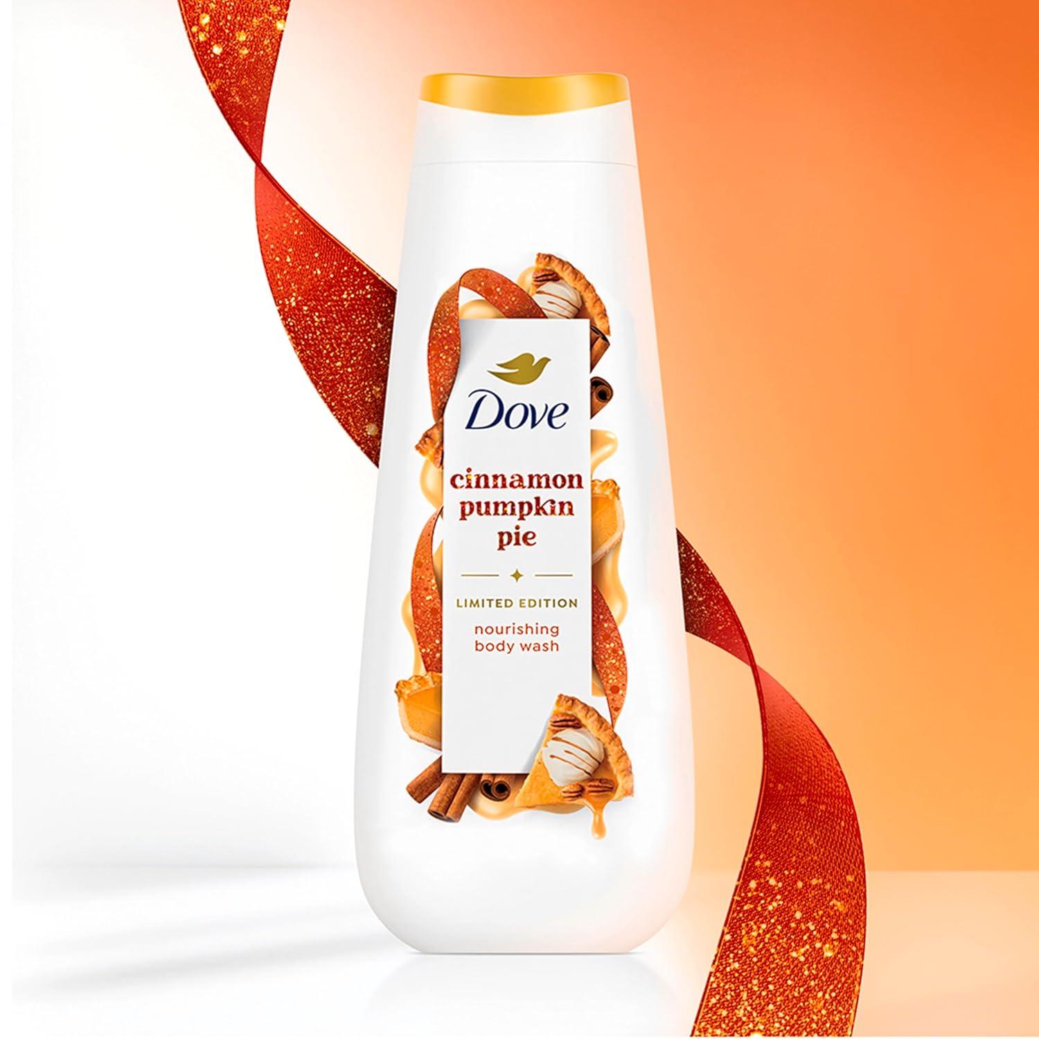 LIMITED EDITION HOLIDAY TREATS: Deck the shower with Dove Cinnamon Pumpkin Pie Body Wash, a delightful Limited-Edition Holiday Treat that indulges your every sense with a harmonious blend of delicious nourishment and irresistibly festive scents
