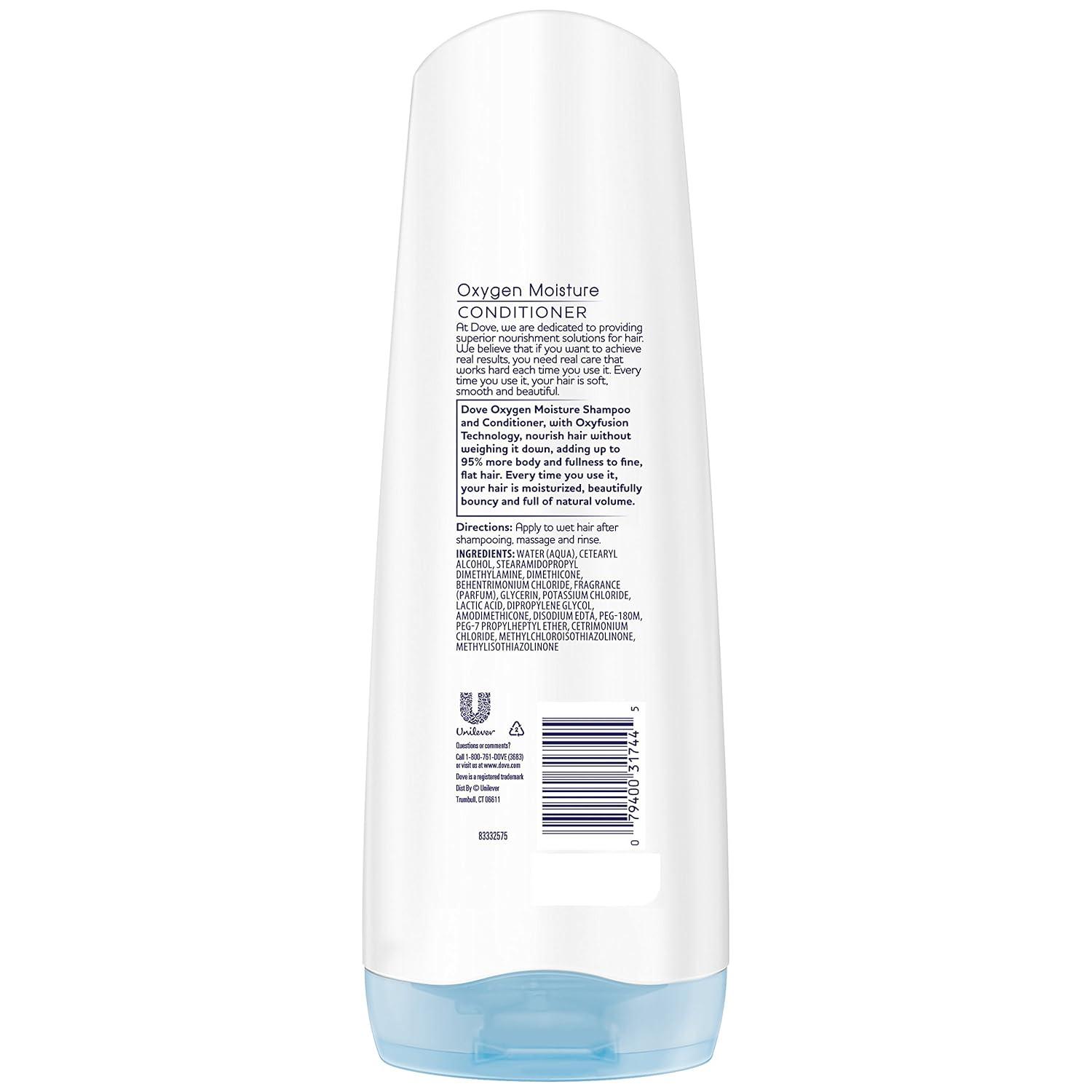 Dove Nutritive Solutions Oxygen Moisture Conditioner is made with Oxyfusion Technology, a new generation of moisture. With lightweight, oxygen-fused conditioning ingredients, the formula rapidly disperses on your hair. It gently cleanses & moisturizes, breathing life into fine, flat hair. If you have fine and limp hair, it can be difficult to find a hair conditioner that moisturizes and nourishes your hair without weighing it down with too much product. You might even have avoided using conditioner at all, and found that this dries your hair out. That’s where this Dove Nutritive Solutions Oxygen Moisture volumizing conditioner, created specially for fine hair, comes in. This is Dove’s best conditioner for achieving bouncy and moisturized hair, and it breathes life into fine, flat hair so you’ll no longer feel the need to skip this stage of your hair care routine. Dove Nutritive Solutions Oxygen Moisture Conditioner for fine, flat hair glides easily onto your hair to make detangling a breeze, and is suitable for daily use. All you have to do is apply a dollop of this moisturizing conditioner to freshly shampooed hair, focusing on those troublesome ends, and rinse well. To get the best results and the appearance of bouncy hair, use this Dove conditioner with Dove Oxygen Moisture Shampoo. Stock up with this 4-pack to ensure your hair stays bouncy and full!