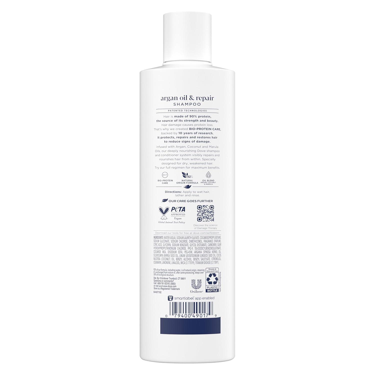 Dove Shampoo Argan Oil & Repair for Fine Hair with Bio-Protein Care Technology and Argan Oil Blend 12 Fl Oz(12 Fl Oz (Pack of 1))