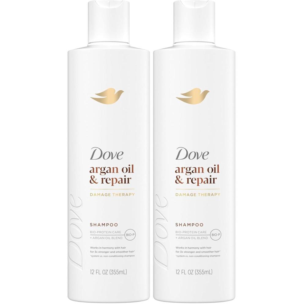 Dove Shampoo Argan Oil & Repair for Fine Hair with Bio-Protein Care Technology and Argan Oil Blend 12 Fl Oz(12 Fl Oz (Pack of 2))