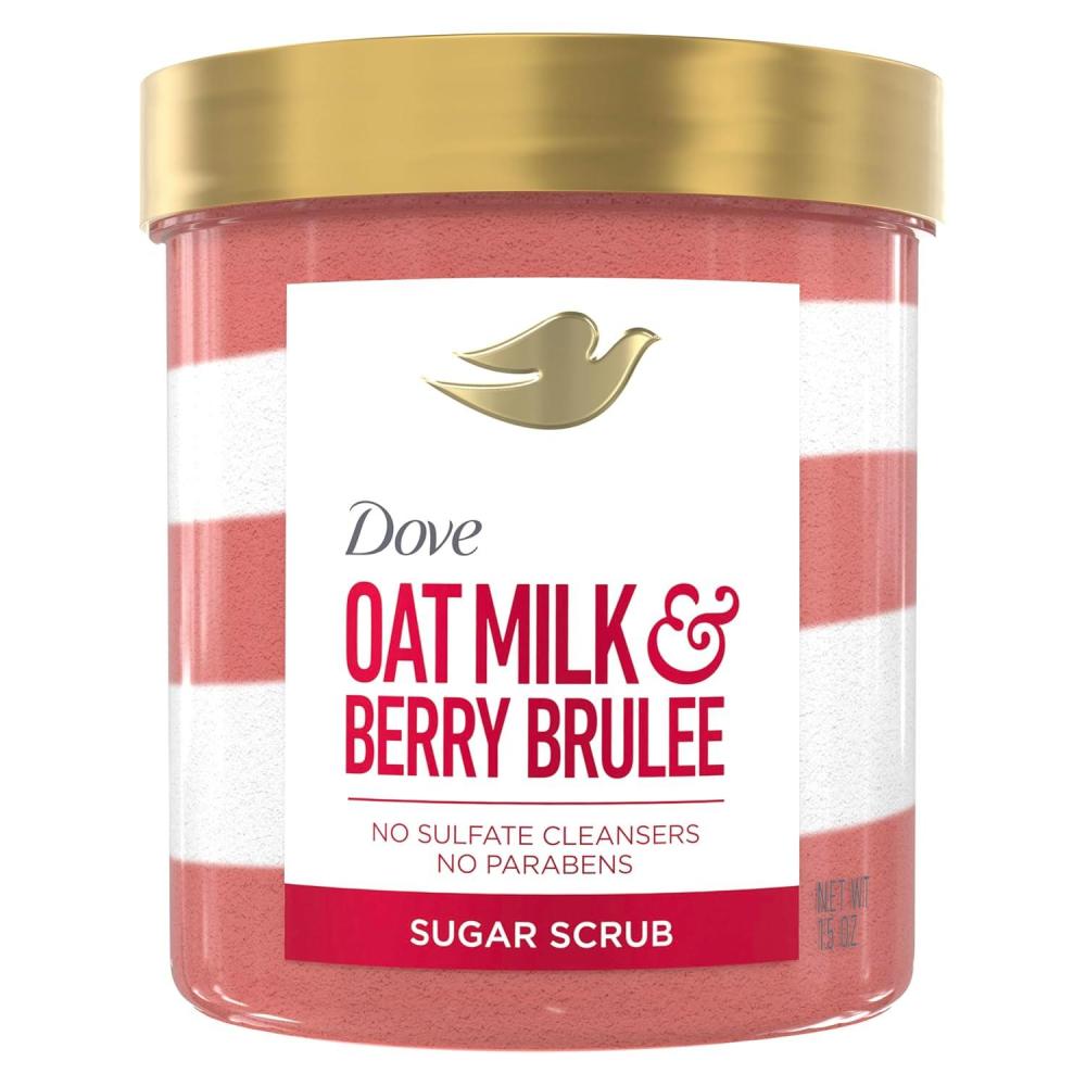 Indulge your skin in a whole body treat with Dove’s Oat Milk & Berry Brulé Sugar Scrub. Part of the Plant Milk Collection, this luxurious scrub is crafted to feed your glow with a blend of plant-based moisturizers, pure cane sugar, and a comforting plant milk blend. The rich, creamy texture gently buffs away dull skin, revealing a smooth, radiant finish that feels as good as it looks. Say goodbye to harsh ingredients—this formula contains no sulfate cleansers and no parabens, making it a gentle yet effective exfoliator for all skin types. With every scrub, you’ll enjoy the sweet, soothing scent of oat milk and berry brûlée, turning your shower into a spa-like escape. Whether you're starting your day or winding down, this sugar scrub is your go-to for glowing skin. Scrub-a-dub-dub—sugar magic in the tub! Just buff to bliss, rinse, and glow. Treat your skin to the glow it deserves.