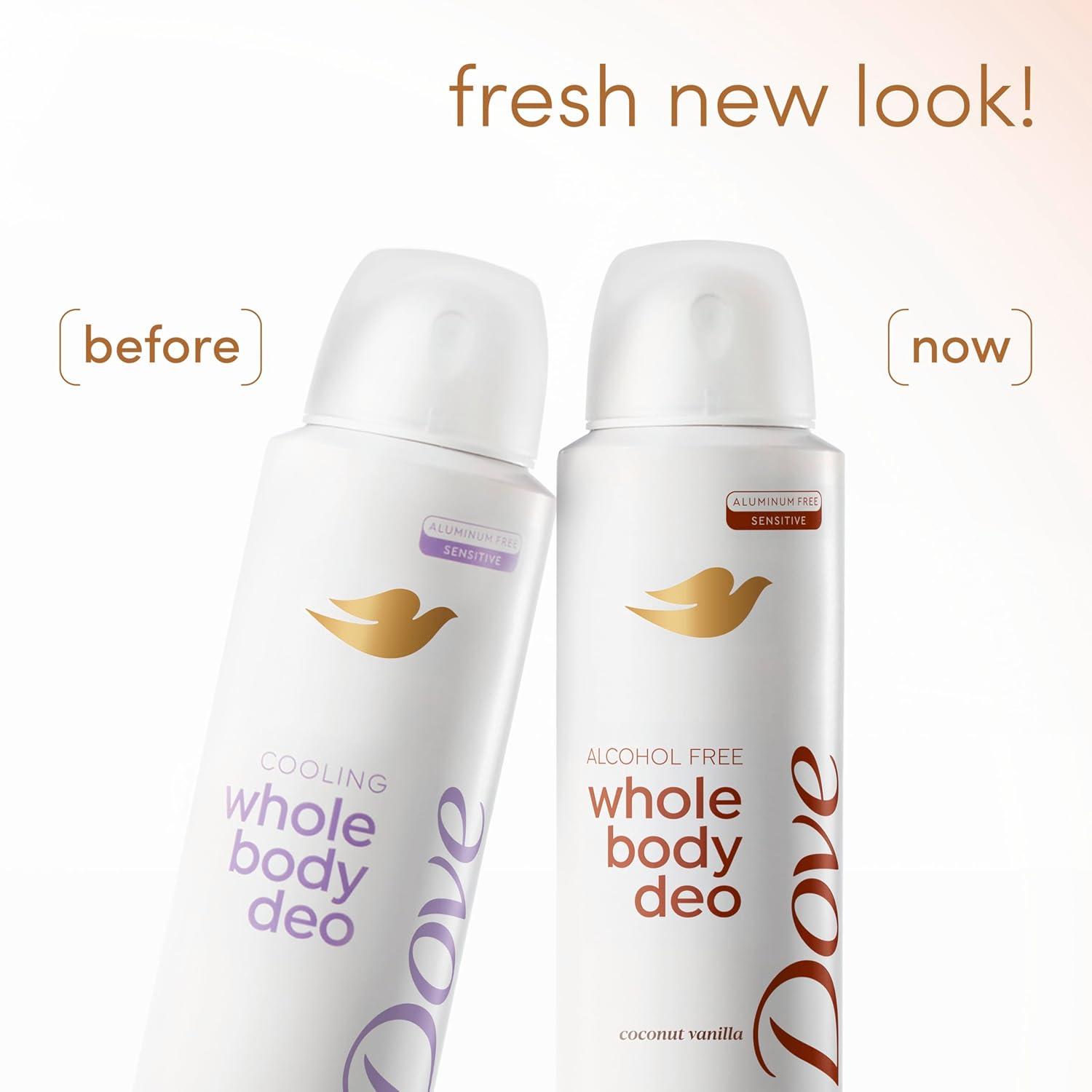 Dove Whole Body Deo Alcohol Free Deodorant Spray for Women Coconut Vanilla 4 oz