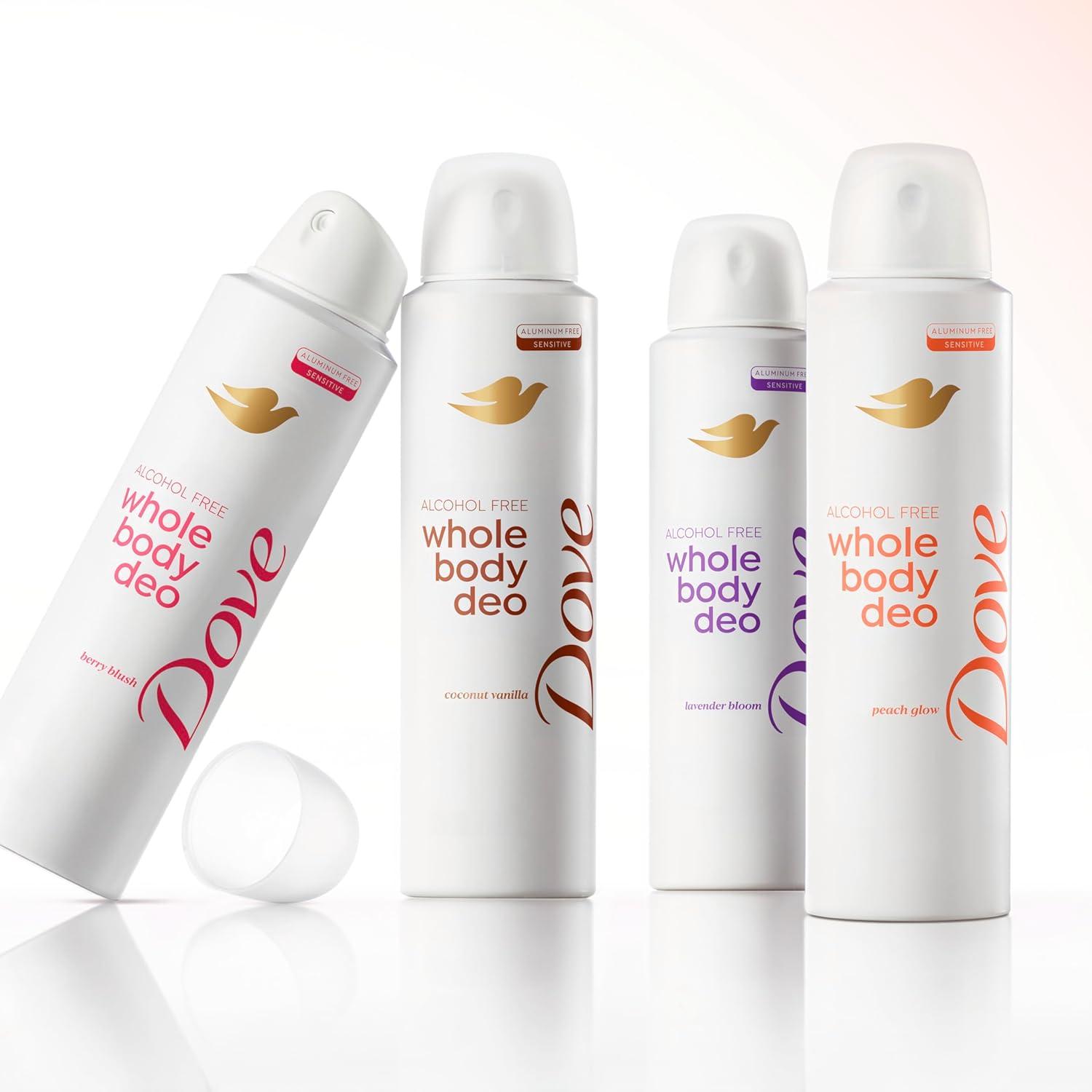 NEW PRODUCT LAUNCH – ALCOHOL FREE ODOR CONTROL: Dove Whole Body Deo provides 72-hour odor control, without irritating alcohol. The gentle formula tackles odor everywhere, with no sting or burn