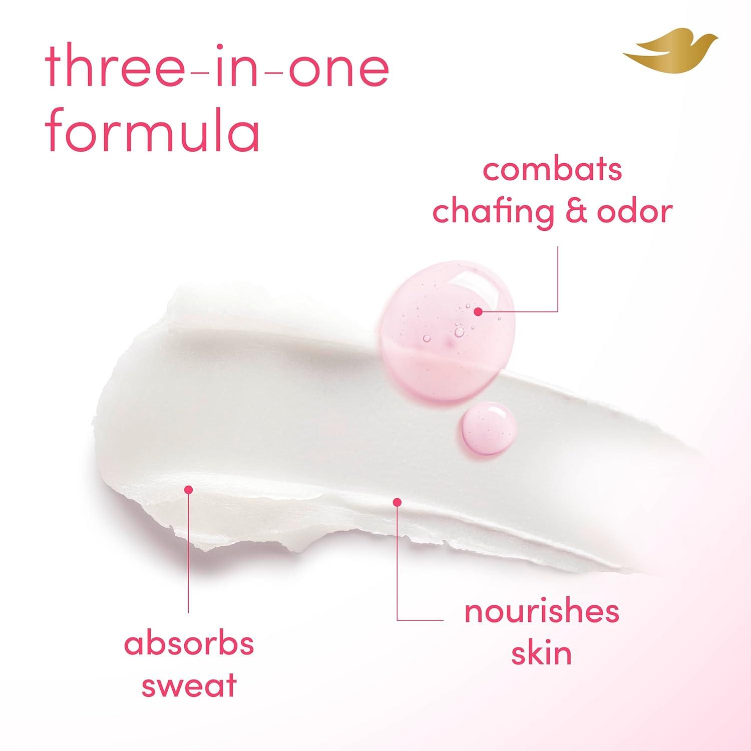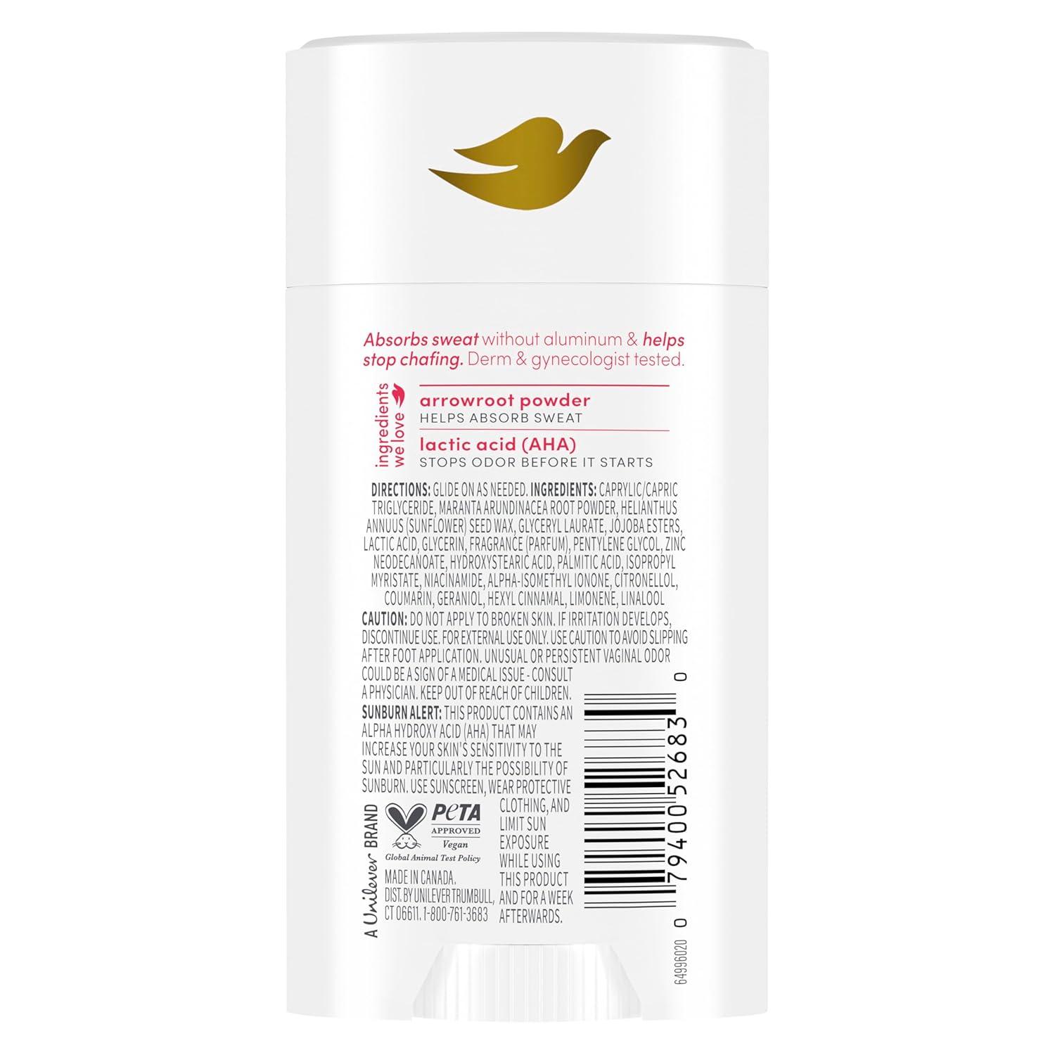 Meet the skin-loving, 4-in-1 deodorant stick that deserves a spot on your skin care shelf. Dove Raspberry & Rose Anti-Chafe Whole Body Deodorant Stick neutralizes odor, helps stop chafing, absorbs sweat, and nourishes skin all over. Powered by 3.6% serum, it balances pH to target odor at the source. It also is infused with nourishing skin care, which hydrates skin as it works. This aluminum-free deodorant formula is dermatologist and gynecologist-tested. It is gentle anywhere you apply it, from pits and intimates* to thighs and toes. Plus, the juicy raspberry and rose scent will give your senses a boost with every swipe. We believe that when your skin feels good, you feel good – Dove Whole Body Deodorant is here to give you that extra boost. *For external use only